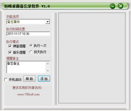 恒峰桌面备忘录是一款集事件备忘、定时启动软件、定时关闭软件、定时关闭电脑、定时重新启动电脑为一体的绿色免费工具,软件界面简洁,操作简单。