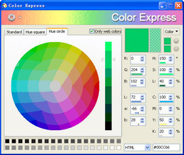Color Express是一款免费的颜色代码选取器,除了具有Windows常见的选色工具外,另外也提供可以从图片、系统或屏幕上来选色并提供RGB、HSL、CMYK、CIE Lab等及常应用在HTML、C++、Java、Basic、Delphi等开发工具的颜色代码及可导出带有色码的颜色图片等功能。