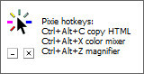 Pixie是一个非常小巧便捷的取色工具,仅仅8KB的大小,实时显示鼠标当前位置的颜色及颜色代码,通过快捷键实时快捷键使用颜色代码一键复制、混色器、放大器功能。