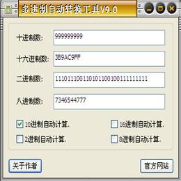 多进制自动转换工具是一个多种进制间自动转换的实用工具,只要在窗体中输入其中一种进制数,即可10进制、16进制、2进制、8进制之间全自动相互转换并即时显示其他3种进制数。支持9位十进制数的转换:例十进制数999999999对应二进制数111011100110101100100111111111,而微软本身提供类似的进制转换工具最大只能支持3位十进制数字的进制转换。