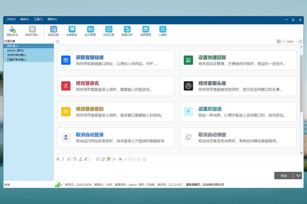 网站多客宝可帮助网站管理者实时监控企业网站在线访问者的浏览轨迹,查看在线访客所在地,访问时间等信息。并定时自动向网站在线浏览者发出对话邀请,或者在页面直接显示浮动对话框与客服对话。同时网站管理者可以按日期、时段、地区、搜索引擎、关键词、友情链接等内容统计网站访问量、邀请量、对话量、客服的对话质量。