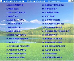 电脑菜鸟必备知识宝典,v2.0版本收选三十篇常用的电脑基础知识,包含电脑快捷键大全、运行命令大全、WINDOWS使用技巧大全、系统优化方法、硬件基础知识、bios详解、IPS$知识大全、防黑客必备知识等等。另外软件还有7个隐藏的金蛋,包括诗词、对联以及娱乐模块。