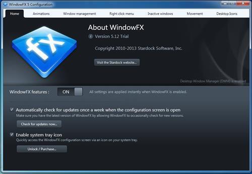 它利用许多windows的隐藏API,让windows多出许多变化。WindowFX依照你所使用的操作系统不同(Win98/NT/2000/XP)而有不一样的变化。比如:在视窗背后加上阴影而制造出半透明的效果。当你移动窗口、打开软件、选择菜单都可以有半透明的效果,而且还可以调整透明度。