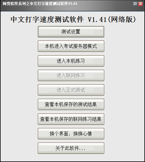 一款专门用于测试打字速度的软件。只需首先将需要考试的人员姓名和考号录入数据库,考试时您无需记录,系统会将考号、姓名、考试时间、所用的考试文本、正确字数、错误字数、正确速度、正确率等自动记录在案,您只需在考试完毕后将考试结果输出为文本文件或XLS电子表格文件并打印即可(注意:每个考生只能考一次,第二次再输入考号时会自动禁止重考)。