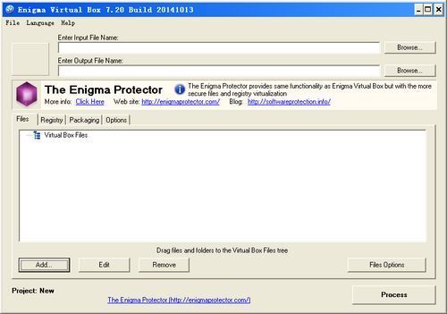 Enigma Virtual Box 是一款免费的软件虚拟化工具,它可以将多个文件封装到您的应用程序主文件,这样您的软件就可以制作成为单文件的绿色软件,Enigma Virtual Box 支持所有类型的文件格式,包括动态链接库 (.dll),ActiveX/COM (.dll, .ocx), 视频/音频文件(.avi,.mp3),文本文件(.txt,.doc) 等,虚拟化后的软件不释放任何临时文件到您的硬盘,文件模拟过程仅在内存中运行。