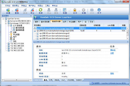 iStorage Server是KernSafe Windows版的iSCSI服务器软件,可以轻易构建高可用IP SAN解决方案,和企业集中存储软件(以及私有云)。 可让您快速实现各种企业级高可用和集中存储解决方案,如高可用Web服务,高可用数据库、高可用虚拟化以及企业级集中加密存储系统等等。该产品支持各种存储映像如:磁盘映像,物理磁盘,分区,CD / DVD-ROM光盘,磁带或任何其他类型的基于SCSI的设备,甚至各种流行的CD / DVD的图像给它的客户机,它具有很多益处,是每个企业都需要的产品,同时基于它还可以迅速搭建企业集中存储解决方案。iStorage Server还提供了各种企业级功能,如RAID-1/5(镜像和冗余)功能、企业级快照、CDP以及高可用等。