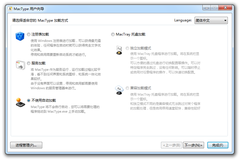 它是一个开源项目,能接管Windows系统的GDI字体渲染功能,实现比Mac系统更华丽的字体渲染效果!MacType支持目前主流的WinXP、Vista和Win7等操作系统。安装过程十分简单,到最后,它才会让我们在四种加载方式之间进行选择,对于一般用户来说,最好选择MacTray方式加载(MacTray也有两种方式,建议采用独立加载模式)。这种方式会在系统托盘中显示一个控制图标,方便配置。