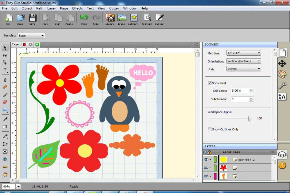 Easy Cut Studio 是一款非常好用并且专业的刻绘软件,为各种刻字机以及绘图仪提供产品设计到切割的一体化应用。包含版面设计、曲线生成与编辑、排版布局、打印+切割, 切割加工设定等,强大的图形绘制与编辑功能,支持精确坐标输入、节点编辑, 图层管理, 以及SVG、EPS、PDF, AI 等矢量文件的导入。独有的图像跟踪功能允许你提取图像轮廓,将位图转换为矢量图(转换GIF, BMP, TIFF, PNG, JPG到可切割的SVG矢量图)。具有轮廓切割功能。
