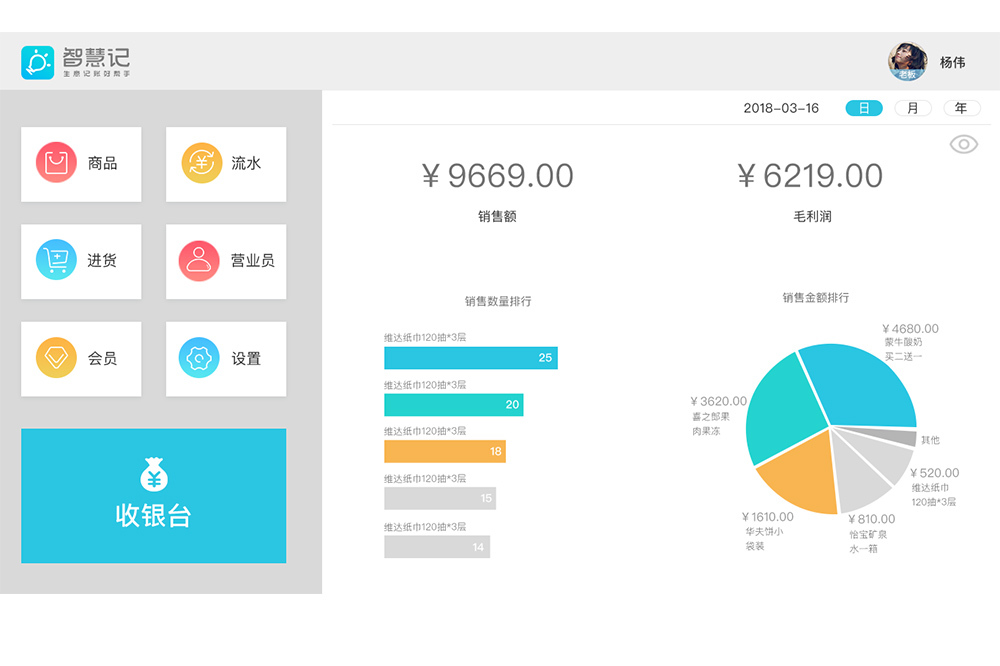 智慧记智慧门店是为零售门店提供的智慧门店经营解决方案。主要功能包括库存、销售、收银、记账、报表等。软件免费使用,另外可以在原有收银机(需满足适配要求)上使用,无需购买新机。软件简单易上手,差异化优势包括扫码收银智能记账、扫码智能录入商品库存、掌柜宝进货自动生成进货单、收银机和手机电脑可以数据同步等。通过使用智慧记智慧门店,商户可有效提升门店信息化管理水平。