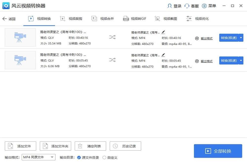 视频格式转换器,支持各种视频格式一键转MP4,兼具视频剪切,视频合并,视频分割,视频转GIF等功能,软件可以调节分辨率,帧数,编码格式。