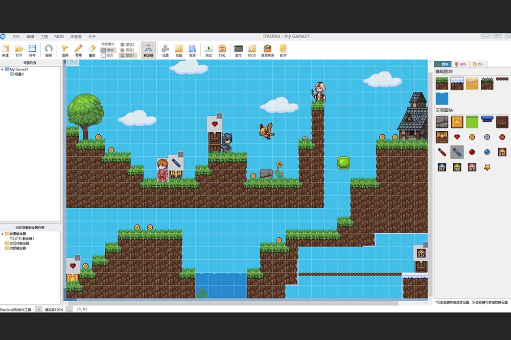 iFAction是一款极易上手的游戏制作工具,目前拥有横版ACT、ARPG等模式,预计2020年中旬将上线AVG模式。它操作友好,无需编程即可通过可视化界面轻松制作游戏关卡!开放的自定义Mod脚本,让你的精彩创意可以在此实现!
