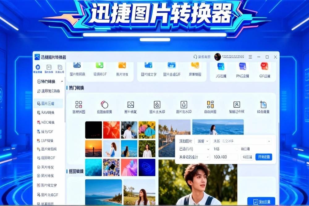 迅捷图片转换器是一款简洁好用的图片格式转换编辑软件。支持jpg、jpeg、pbg、bmp、tif、tiff、webp、pdf、gif、heic、raw、psd、svg、cr2、crw、arw、nef、raf、orf等百余种图片格式转换,同时还提供图片压缩、抠图换背景、证件照制作、图片去水印、人像美颜等多种图片编辑功能,帮助用户轻松解决图片转换、图片压缩、抠图、去水印等难题。