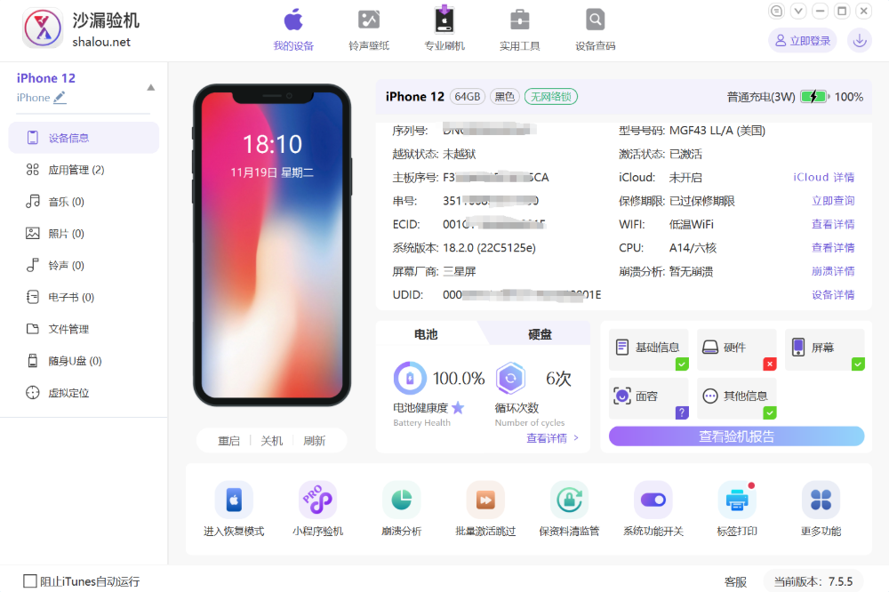 沙漏验机是一款多功能集一体的专业的手机刷机软件,手机刷机、验机(购买二手手机必备工具)、手机数据备份必备软