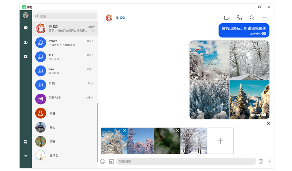 可发送文本、图片、GIF、音频、视频等进行互动交流,让聊天变得更方便。