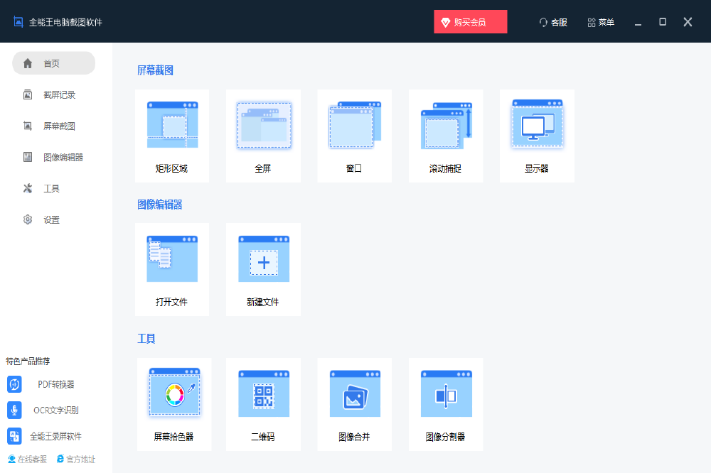 电脑截屏软件是一款专业的屏幕截图工具,截图软件,软件界面简洁大方,支持全屏截图、自定义截屏、网页滚动捕捉、图片编辑、快捷截图等功能。