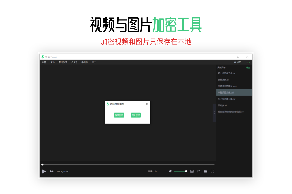 星密是一款集加密、播放、密码锁、保险箱等功能于一体全平台支持的视频图片加密工具软件。可运行在鸿蒙, Windows, Android, iOS, Mac操作系统。加密算法高效且安全,支持主流视频格式的加密及播放,能有效保护个人视频和图片隐私,办公多媒体等视频与图片的安全,防止恶意传播。 软件免费,绿色无广告,持续更新与优化中。