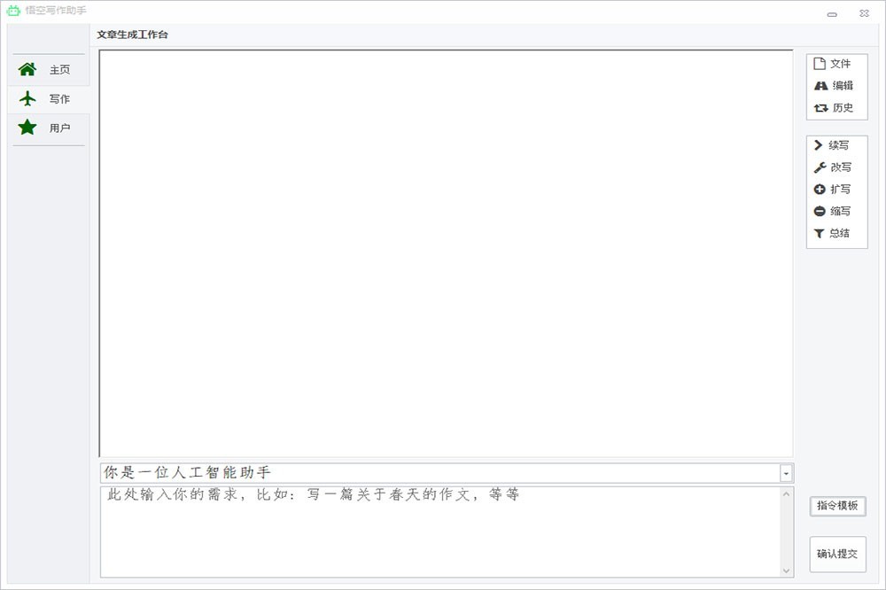 悟空写作助手利用当前最先进的人工智能AI技术,可以进行各种文案的写作和改写、学些、编辑、润色修改等等操作。 悟空写作助手有以下特点:1.原创度高;2.写作范围广;3.语句通顺流利,逻辑性强。4.操作简单,使用方便。 软件还内置大量提示指令,可以很方便的给软件指令,进行写作。 总之,悟空写作助手是一款非常好用的AI写作软件,在写作失去各种灵感时,可以直接在软件中输入写作指令和要求,软件会自动生成合适的内容,操作非常简单有趣。