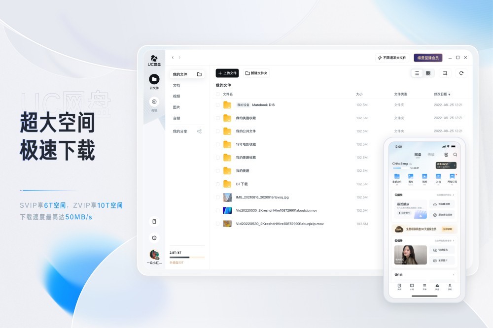 UC网盘是UC浏览器推出的一款速度快、安全、好用的云服务产品。可以便捷地上传、下载、查看你的照片、视频、文档、音频等资料,节省电脑本地空间,保障重要数据不丢失。