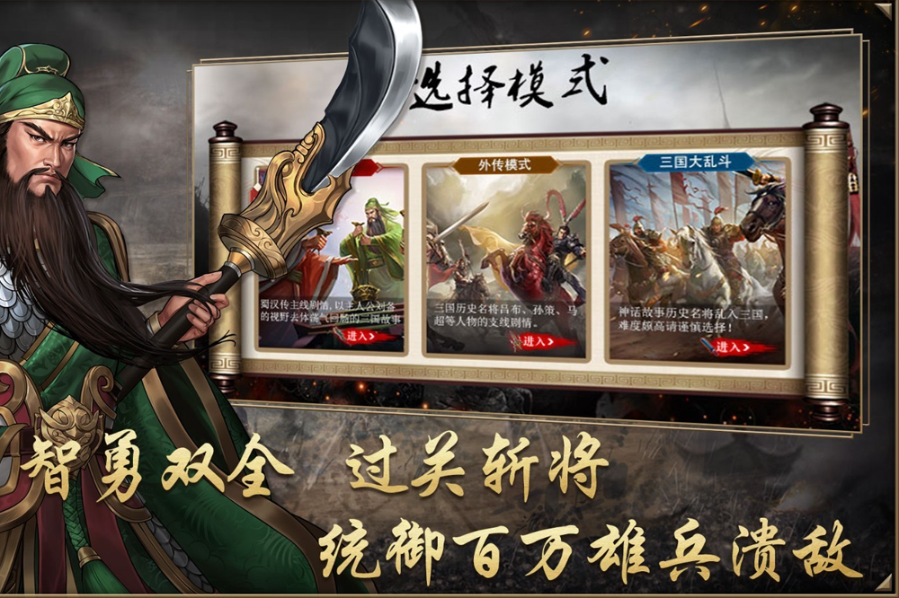 东汉末年,诸侯四起。北有枭雄曹操。南有霸王孙权。就是这么一个战乱不休的年代,却孕育了不朽的传奇。玩家将扮演刘备进入群雄相争的年代,点将布阵,强攻智取,收集宝物,培养武将。玩家通过剧情能了解到很多脍炙人口的三国历史事件,如桃园三结义、温酒斩华雄、三英战吕布、千里走单骑等等,在玩游戏的同时还能学到更多的历史知识。欢迎下载游戏,挥洒豪情壮。快来匡扶汉室,一统三国吧!