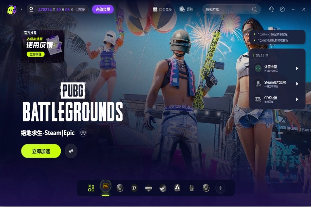 支持热门游戏:Steam商店【Apex英雄】【绝地求生】【最终决战】【Epic平台】【英雄联盟PBE测试服】【CSgo:2 】【侠盗猎车手5】【战地2042】【暗黑破环神4】等上万款游戏加速。致力于提供稳定、流畅的游戏体验。其会员时长自动暂停功能减少了不必要的浪费,同时支持各类国内外游戏,让玩家无需担心网络问题。古怪加速器拥有海量线路选择,针对不同地区和网络环境提供最佳的加速方案,有效降低延迟、减少丢包现象。作为加速器品牌,广受用户好评。对于追求极致游戏体验的玩家,古怪加速器是不可或缺的得力助手。