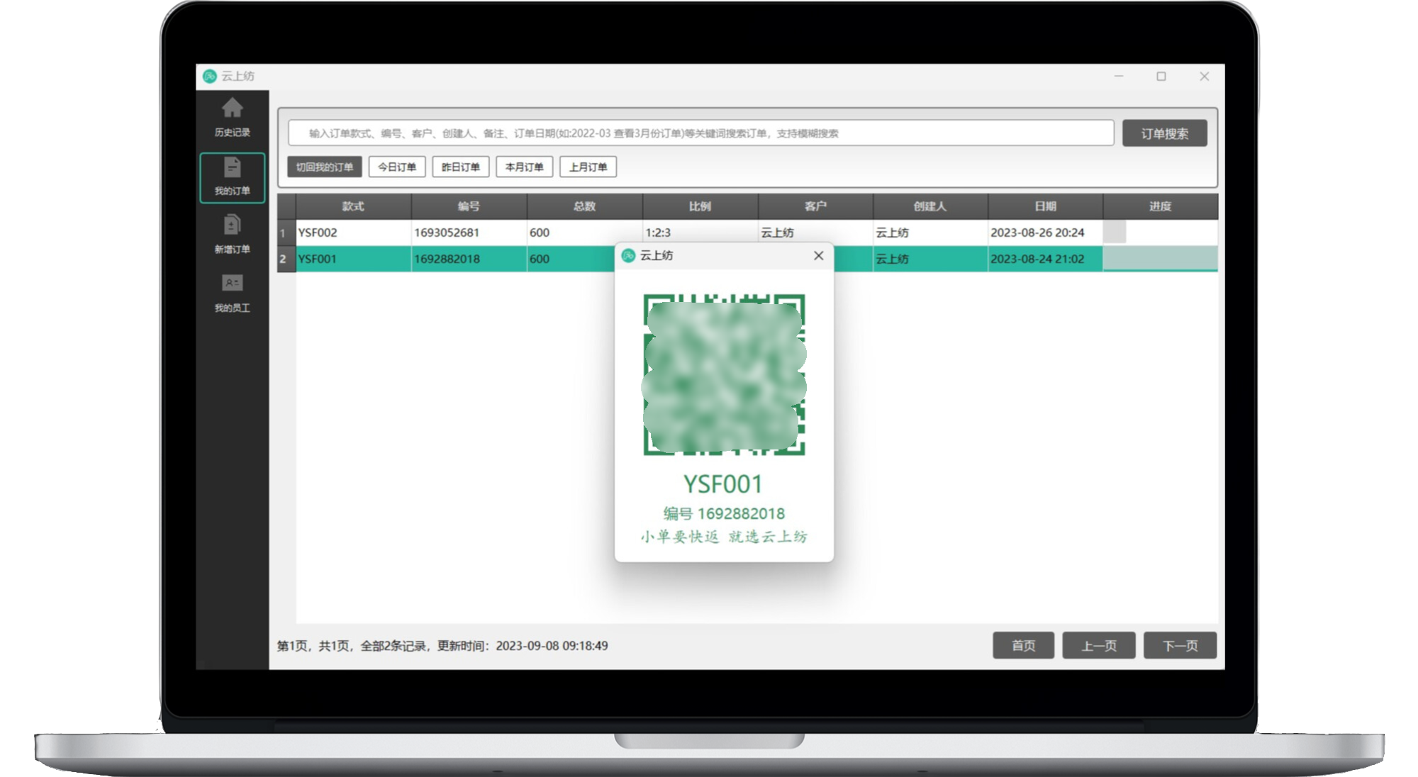 云上纺是一款高效便捷的服装扫菲软件,即服装打菲计件或服装扫菲计件软件,员工微信扫码就能登记工序,旨在帮助服装厂实现数字化。支持裁床打菲,微信扫菲,生产订单进度实时查看,工资报表自动导出,极大节省服装生产成本。