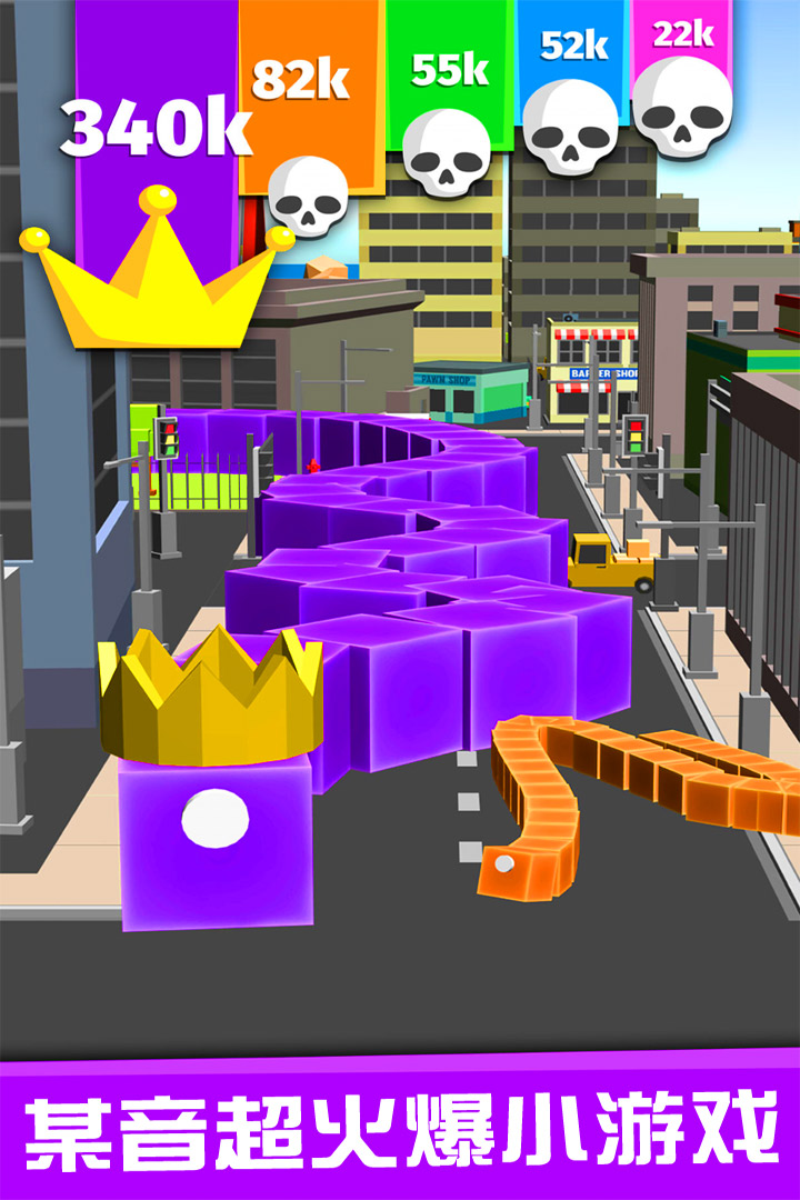 【手机端软件,需要安装游戏助手运行】 好嗨哟,我要做这条街上最靓的蛇仔,蛇蛇争霸,盘起来!结合当下流行火爆黑洞大作战拥挤城市贪吃蛇大作战的玩法,全新打造好玩新颖的游戏体验,采用了色彩斑斓的块状风格,滚动的天空城市下画面相当华丽,视觉冲击力很强,而且玩法一定会超出你的想象。在场景中寻物体进行包围来增长自己的身体,物体越大,需要的身体就越长,所有你需要从最小的开始,玩家之间不会相互碰撞,所以你的目的就只有一个,通过长度来战胜它们。