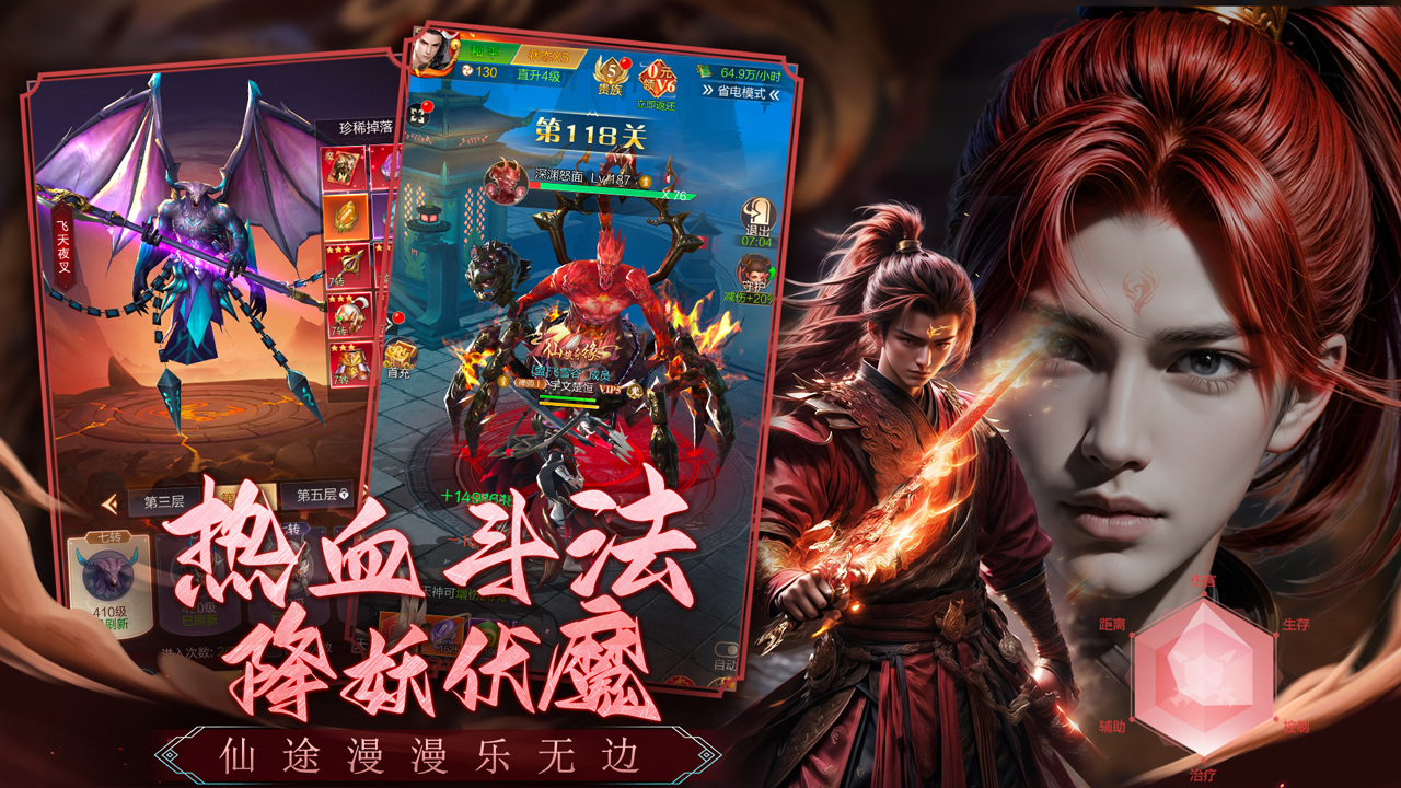 【手机端软件,需要安装游戏助手运行】 《猎魔永恒》是一款以虚构的仙侠世界为背景的热血游戏,研发团队广州游雁深耕MMOARPG领域近十载,几番经典力作打下根基,300人团队年度大制作。引人入胜的剧情和精彩玩法让你沉浸其中。玩家将扮演凡人弟子,在试图成为强大修仙者的道路上历经磨难,以强大的毅力完成任务、剧情探索、打败魔王、挑战副本、日常活动等玩法获取各种材料和资源,用以提升装备、获取坐骑、收集萌宠,强力变身,以此来提升自己的战斗力,最终成为对抗魔族的支柱,维护人界的安定祥和。在这里,可以尽情展示自己的实力与智慧,在游戏里获得极致爽快的打击体验,游戏中特推轻功玩法,可飞天遁地,转世成仙,无所不能,给予玩家一个精彩绝伦的仙域世界。