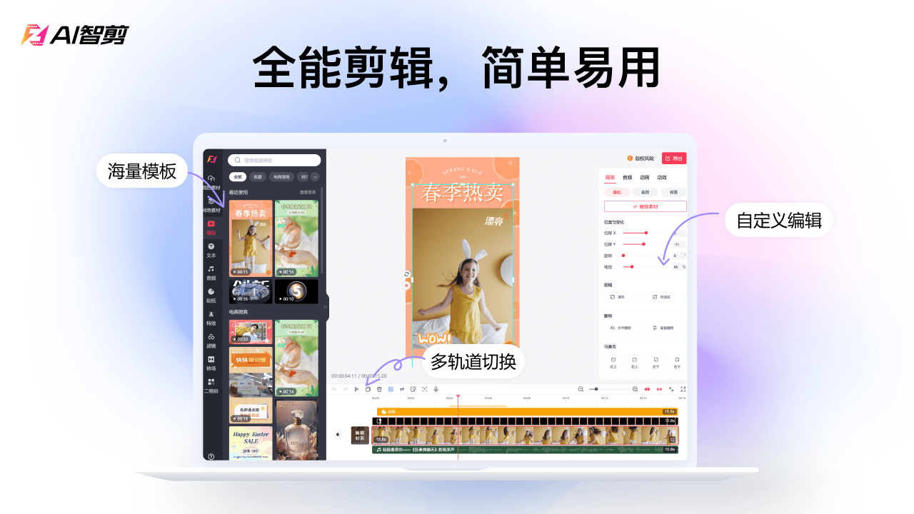 上线以来受到【抖音、快手、小红书、B站、微博、微信视频号】等平台用户的强烈推荐和好评,无论你是视频剪辑初学者,还是视频创作高手,都可以用AI智剪自动制作出热门视频。专业易用的视频剪辑工具,博主up主学生素人宝妈必备的视频创作软件~