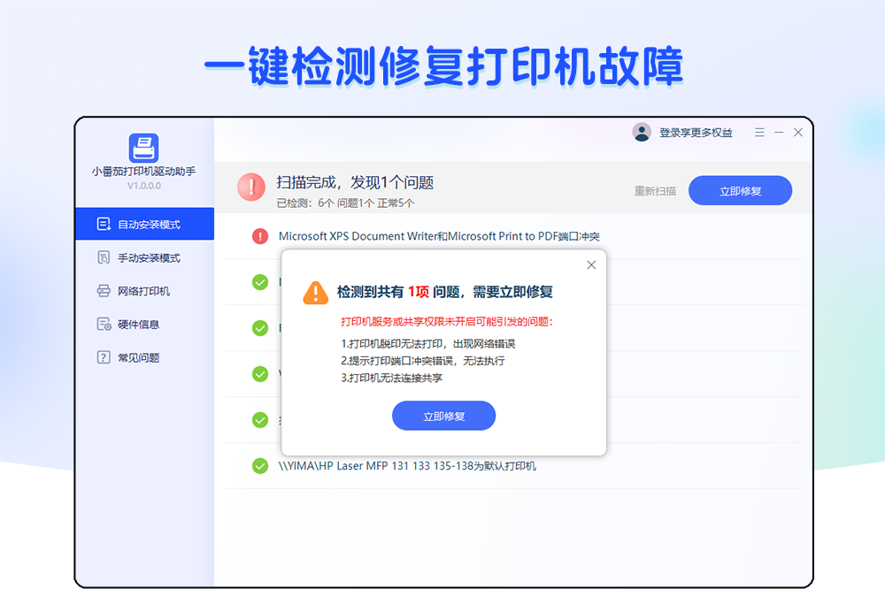 小番茄打印机驱动助手是一款专业的打印机修复软件,主要是帮助用户轻松识别和处理打印机相关问题,修复打印机设备,提升工作效率。
