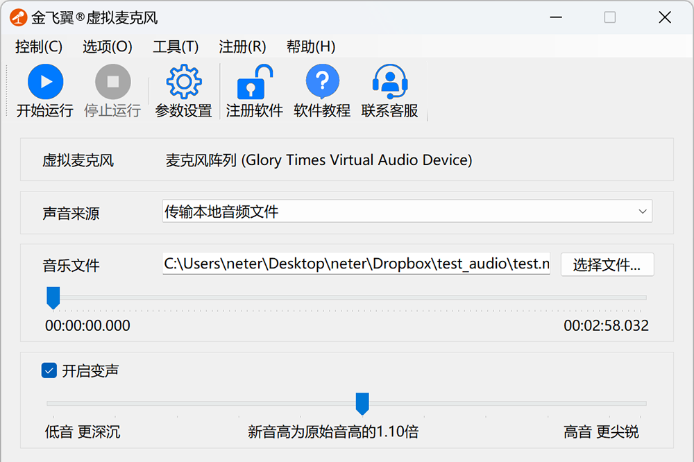 玩转语音聊天的魔法工具!金飞翼虚拟麦克风是一款支持多种输入源且能对流入的声音进行实时变声的神奇软件。它会在系统中安装一个纯软件实现的麦克风设备,任何支持语音输入的第三方软件都可以选择此设备作为声音输入,从而实现各种神奇的玩法。金飞翼虚拟麦克风的声音可以来自于系统正在播放的所有声音、本地音频文件和物理麦克风。它的最大特色在于能够对流入的语音进行实时变声,通过调节声音的音高,可以轻松实现男变女、女变男、变成可爱娃娃音等各种好玩的声音效果。金飞翼虚拟麦克风可以广泛使用于各种场景,比如电脑录音、语音私密聊天、在线音视频会议和网络直播带货等。