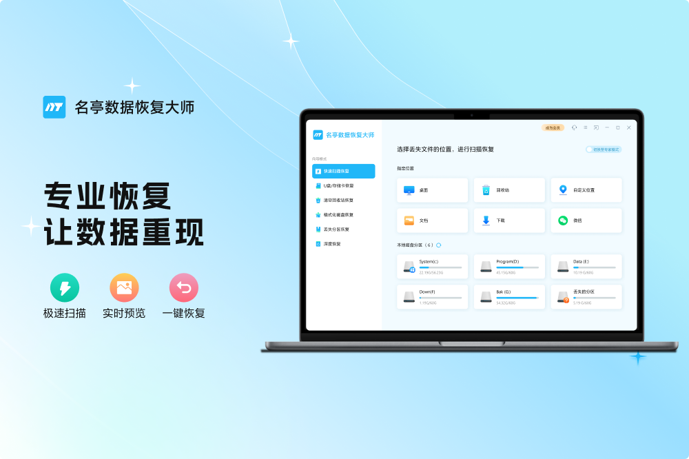一键恢复意外删除、格式化、损坏的各类型数据文件,操作简单、功能强大。