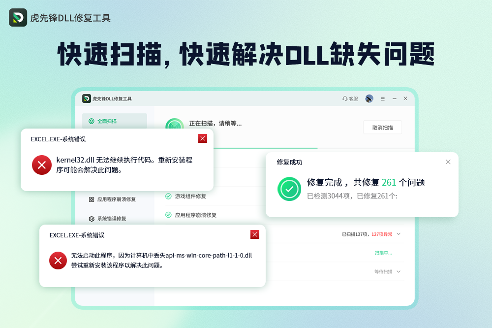 这是一款DLL/DirectX修复神器,支持深度扫描修复系统DLL文件状态,精准识别丢失、损坏、版本冲突等问题,自动关联错误提示(如0xc000007b、MSVCP140.d缺失等)并定位根源修复,支持在线下载微软官方认证DLL文件库,杜绝恶意捆绑,独创版本兼容性匹配算法,避免32/64位系统误装,提供注册表兄余项清理+路径修复双重保障,根本上解决用户DLL缺失,系统/游戏打不开闪退等一系列问题。可以深度扫描修复系统DLL文件状态,精准识别丢失、损坏、版本冲突等问题,自动关联错误提示(如0xc000007b、MSVCP140.d缺失等)并定位根源修复,支持在线下载微软官方认证DLL文件库,杜绝恶意捆绑,独创版本兼容性匹配算法,避免32/64位系统误装,提供注册表兄余项清理+路径修复双重保障,根本上解决用户DLL缺失,系统/游戏打不开闪退等一系列问题。
