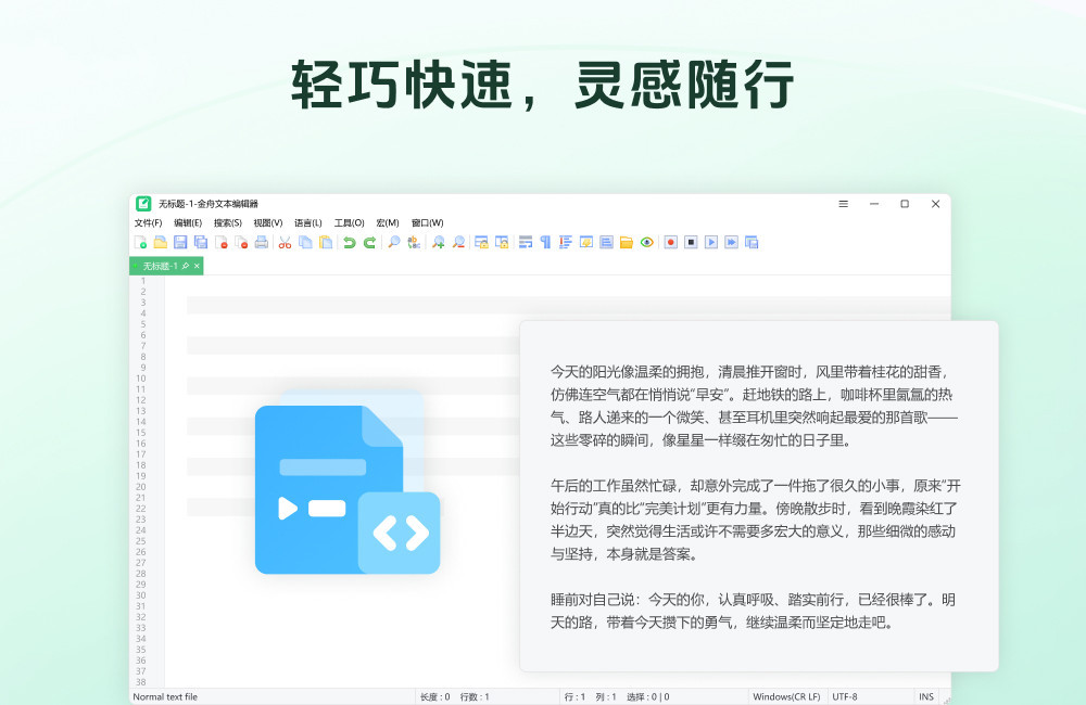 文本编辑器,notepad,文本阅读,文本编辑工具,代码编辑器,记事本;金舟文本编辑器是一款专为Windows操作系统设计的轻量快速、功能强大的文本编辑工具,不仅适合日常的文字处理任务,也适用于各类专业的软件开发工作,凭借其卓越的兼容性和高效的编辑能力,在文本处理领域表现出色,无论是普通用户还是专业人士,都可以根据自己的需求快速上手,是替代Windows记事本的理想选择。