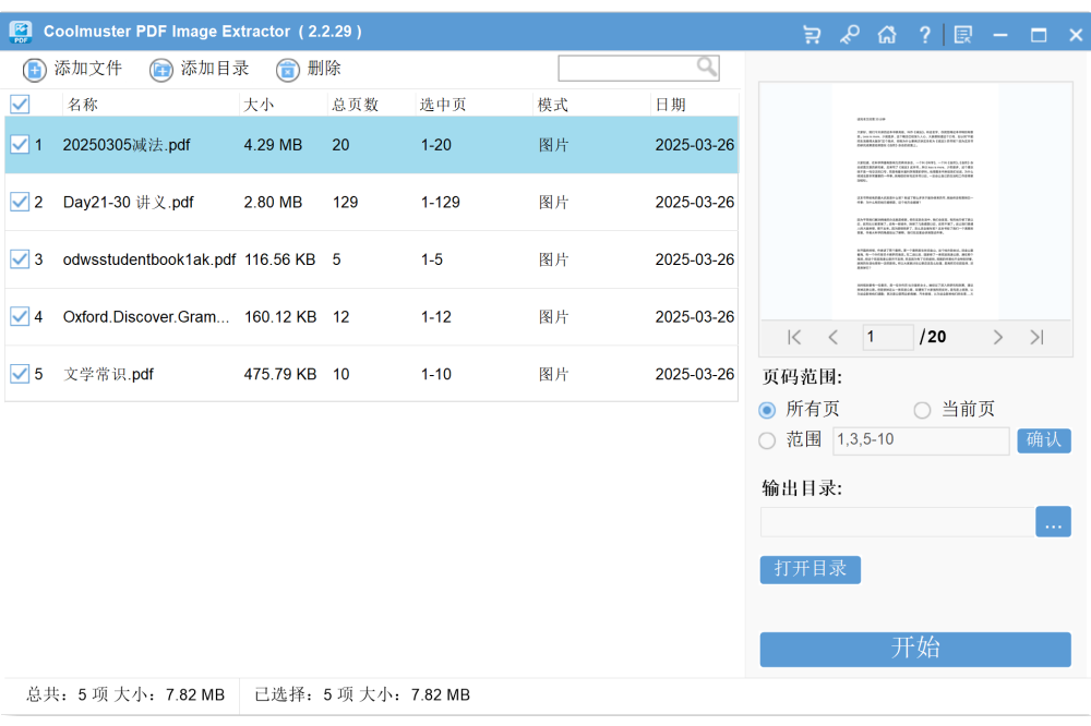 Coolmuster PDF Image Extractor图片提取器是一款强大的工具,可帮助用户快速提取PDF文件中的图片并保存为JPG或JPEG格式。用户只需简单点击,即可批量提取PDF中的所有图片,操作简便,且不影响图片质量。本软件支持批量处理多个PDF文件,您可以一次性导入多个文件,快速提取其中的所有图片。此外,您还可以通过内置的预览功能查看文件内容,灵活设置页面范围,选择特定页面进行提取。无论是将提取的图片用于幻灯片、拼贴或其他任何用途,都能自由使用,且没有任何限制。