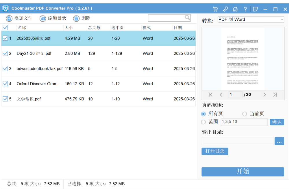 该软件保留原始PDF文件的布局、格式和内容,确保转换后的文件与原始文件完全一致。用户可以在转换前通过内置预览功能查看文件内容,并根据需要选择转换特定页面或页面范围。无论是批量转换还是选择性转换,Coolmuster PDF Converter Pro都能提供准确且高质量的转换结果。界面简洁,操作直观,非常适合需要频繁处理PDF文件的用户。该软件不仅支持大规模批量转换,还能满足个性化的页面范围转换需求,完美保留PDF文件的原始格式和内容。