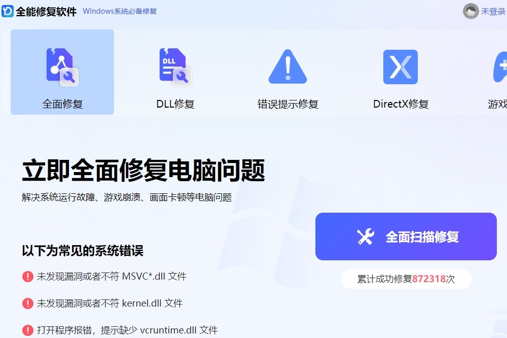 DLL错误专修工具是一款跨平台全能错误修复工具主要解决各种因为dl缺失、directX异常、错误代码提示、游戏应用程序无法正常启动、无法定位程序输入点动态链库等系统错误问题