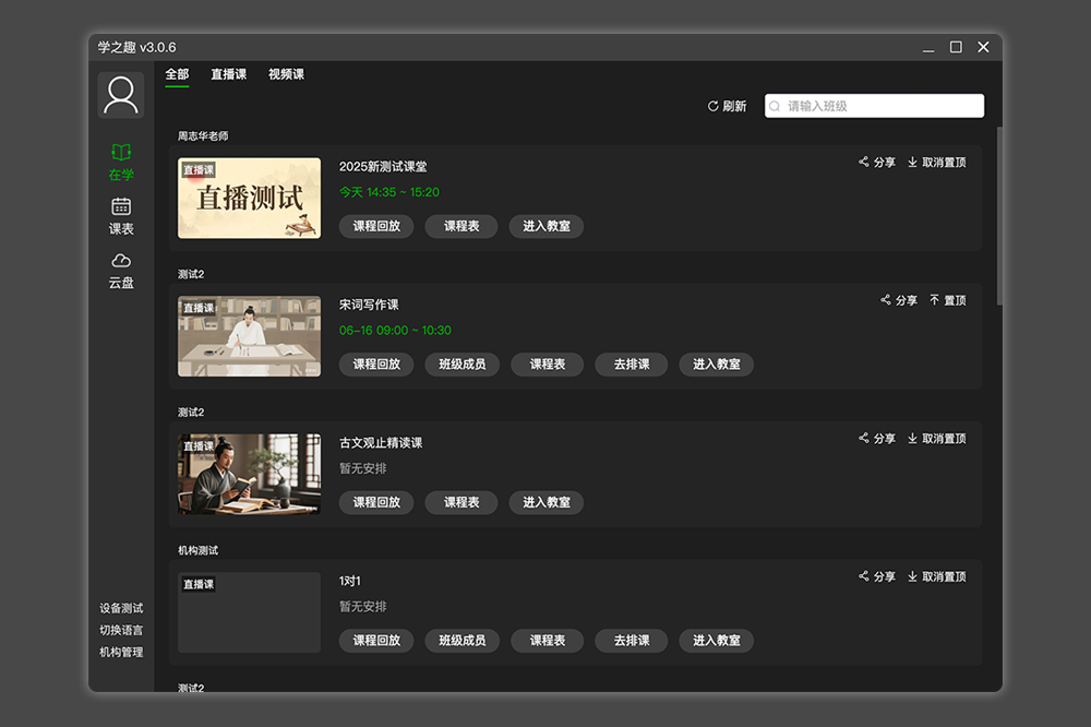 学之趣是一款聚焦知识场景的数字化工具,为有线上经营需求的企业和个人提供一站式技术服务。系统集成在线教室、视频课程等核心功能模块,同时涵盖品牌塑造、用户管理等服务,助力客户构建集内容生产、用户运营与商业转化为一体的线上知识生态。