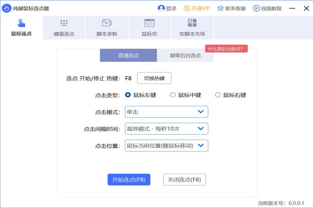 纯犀鼠标连点器是一款可以连点鼠标的鼠标连点器软件。支持鼠标连点,鼠标脚本录制,鼠标宏,脚本开发,脚本播放等功能。支持辅助您实现办公自动化。软件功能简洁易用,非常方便操作。纯犀鼠标连点器让您在玩游戏、网购抢购的时候全自动点击鼠标!主要功能有: 1. 支持快速鼠标点击, 一秒可高达几百次次点击。 2. 鼠标连点器可录制鼠标和键盘的操作,可以循环回放脚本。 3. 可播放脚本代替你进行各种操作,简单易用。