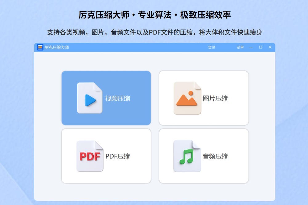 专为电脑用户打造,深度整合视频、音频、图片、PDF 四大核心文件类型的压缩需求,通过专业算法、灵活设置、批量处理 三大技术优势,将大体积文件快速瘦身,在保证文件质量的同时,显著提升办公、创作、存储效率,重新定义文件压缩的便捷性与专业性。