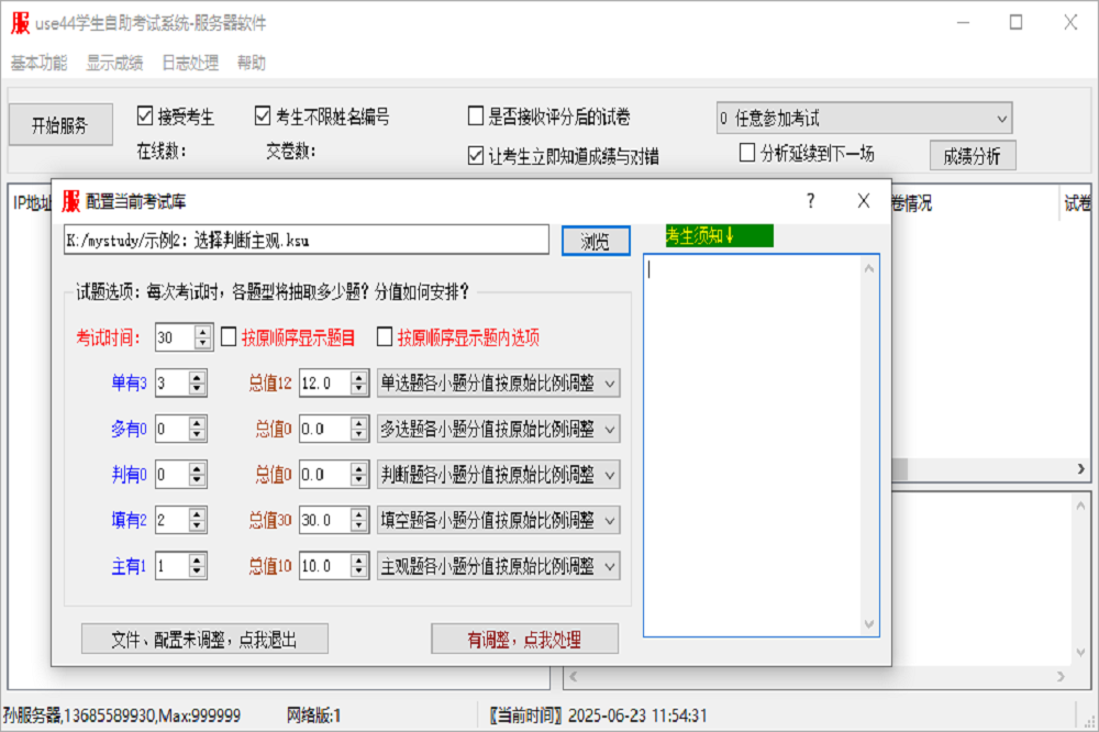 2.可以在局域网内考试,也可以跨网考试(如果在互联网考试,需要有独立的IPv4地址,或在路由器上有相关的映射)