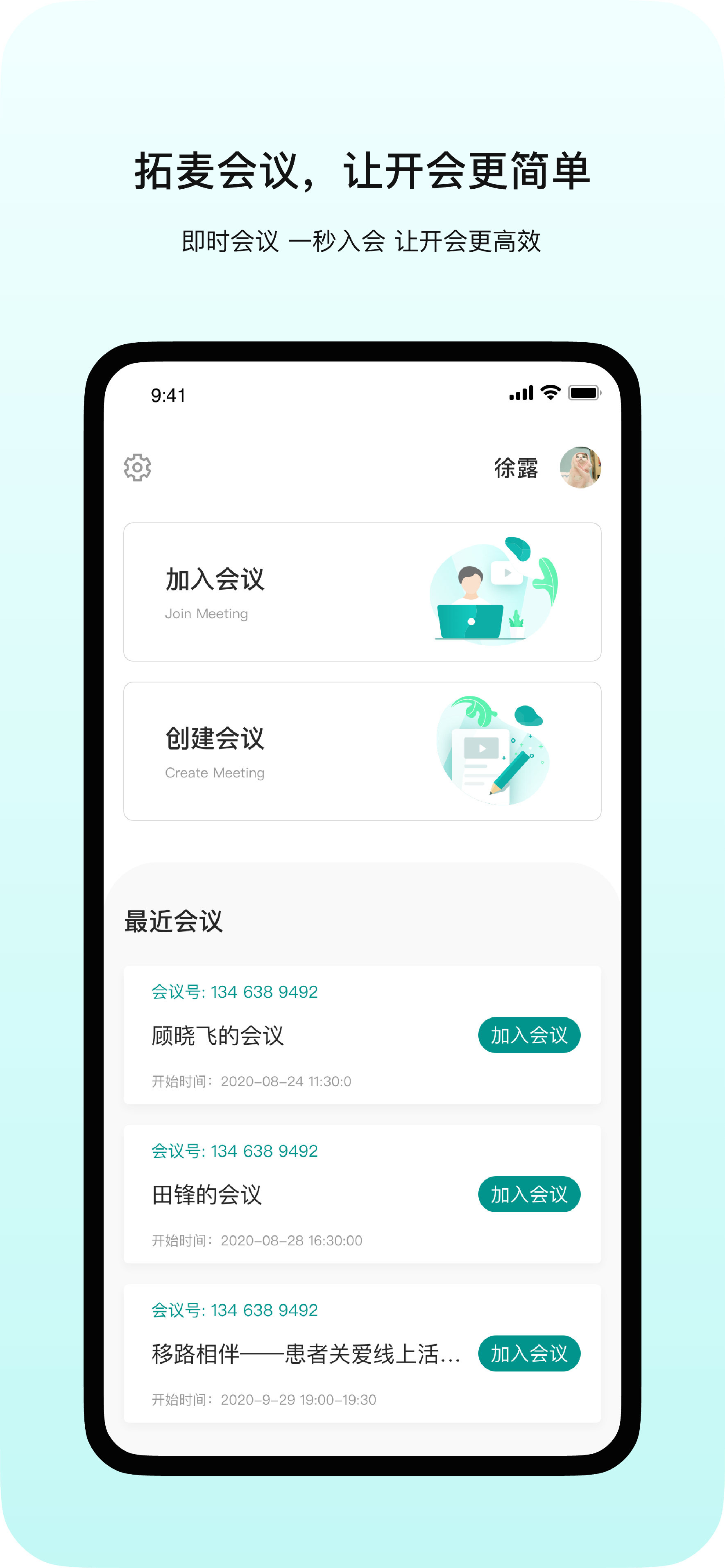 - 即时会议,一健入会,随时随地召开或加入视频会议