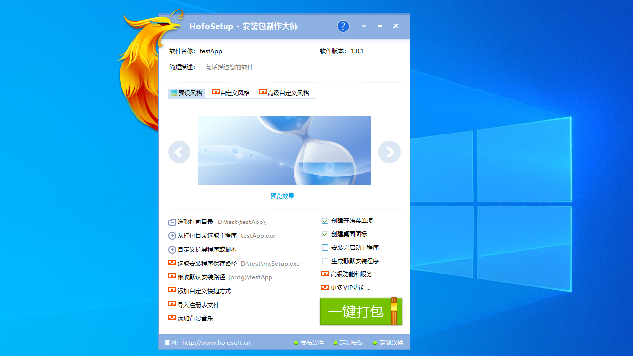 主要特点:一键制作、极速安装、炫酷效果, 体验效果非常好。 HofoSetup安装包制作大师软件特色: