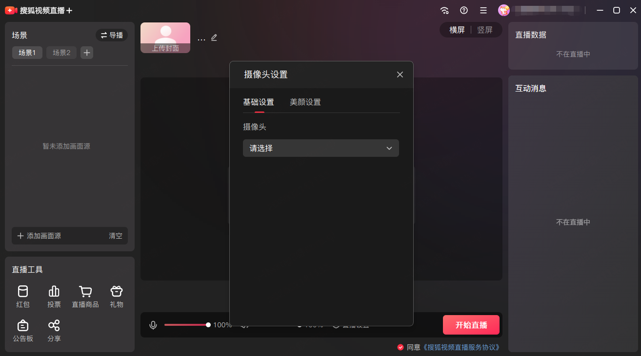 “搜狐视频直播+”是一款电脑端开播应用,是搜狐视频播主在PC设备上直播助手。支持高画质推流、添加多种画面素材(窗口、图片、外接摄像头等)。