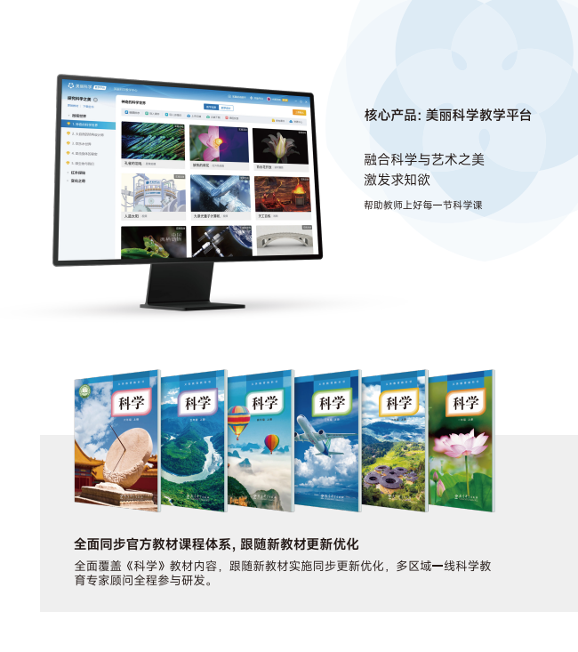 美丽科学教学平台秉持“融合科学与艺术之美,激发求知欲”的理念,是为科学老师倾心打造的专业备授课教学平台,帮老师上好每一节科学课。平台已得到教育科学出版社官方授权联合研发支持,并已获教育部国家数字教育资源公共服务体系备案认证。平台数字化课程资源与《科学》教材完全同步,以科学可视化教学资源为特色,倡导数字化观察、探究与教学。目前平台已在全国超过2万所学校成功应用,服务超过3000万师生。