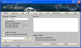 VCDGear 是制作 MPEG4 的必备工具,用于将 VCD 影片 DAT 文件转换为 MPEG 文件,已备再用 FlaskMpeg 或 VirtualDub 制作 MPEG4 影片。