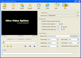 Aone Ultra Video Splitter是一款视频分割工具。可将一个巨大的AVI/DivX,MPEG I/II,VOB,DAT,WMV,ASF 文件切割或截断成小的片断。
