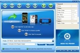 一款功能强大、方便易用的DVD转换软件,它能够将DVD转换为高质量的VCD(MPEG1)、SVCD(MPEG2)、AVI和Divx(MPEG4),主要功能包括:复制DVD到VCD,使用MPEG1编码;复制DVD到SVCD,使用MPEG2编码;复制DVD到AVI、DivX、Xvid,并且支持其它编码格式;输出文件更小,提供高质量的视频音频;转换完成之后能够自动关机;转换过程中提供预览;界面友好,支持换肤;可自定义输出文件尺寸;支持自动分割输出文件以便刻录到CD-R;支持选择字幕和音轨;支持去除Macrovision防盗拷;支持复制防盗拷的DVD。
