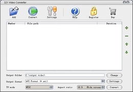转换任何视频文件都像倒数321一样迅速且简单。它支持导入几乎所有的视频格式,含:Flash 视频文件 (*.FLV)、MP4 文件 (*.MP4,*.M4V)、3GP 文件 (*.3GP,*.3G2)、QuickTime 文件(*.MOV,*.QT)、RealMedia 文件 (*.RM,*.RMVB)、等。321视频转换器可调整视频纵横比以支持输出宽屏视频,允许调整TV制式(PAL/NTSC)以方便刻录视频到影碟机上观赏,此外还可更改视频/音频编解码器、视频分辨率、帧率等参数。
