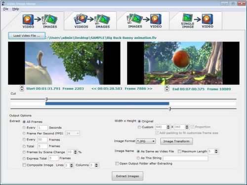 Video Image Master Express是易用的视频转图片免费解决方案,它可分解出视频的每一帧,供你挑选,并将其转换保存为图片文件。软件也支持用成批的图片来创建视频文件,还可以设置帧速,添加声音文件等。