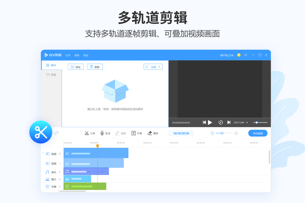 EV剪辑是一款免费的视频编辑软件,小巧稳定。支持给视频配音、添加字幕与滤镜,多轨剪辑轻松实现画中画,任意拼接多段视频,逐帧控制,实现精准剪辑。